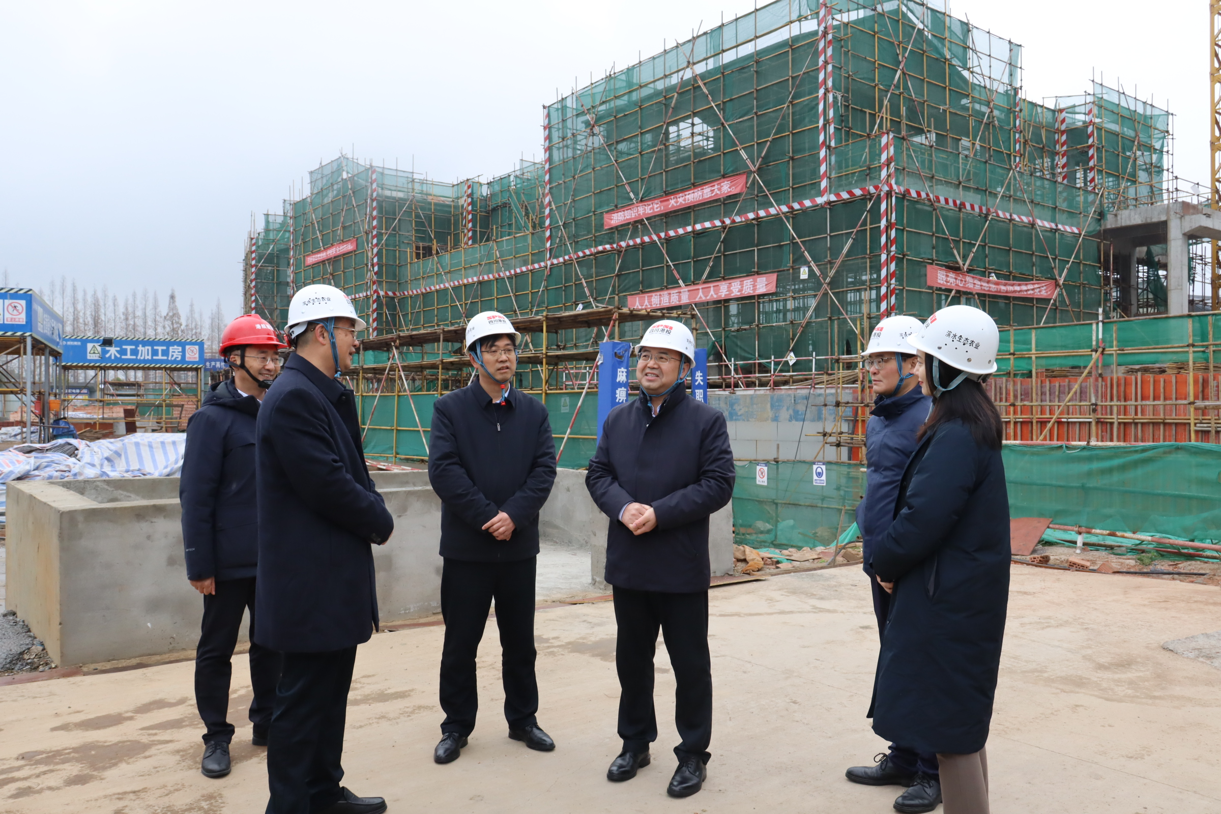 2月22日,四川省国资委党委委员、副主任王先权带队赴港投集团鹤山溪谷水美乡村项目督导春节期间安全生产工作。省港投集团党委专职副书记、董事许东明陪同督导。