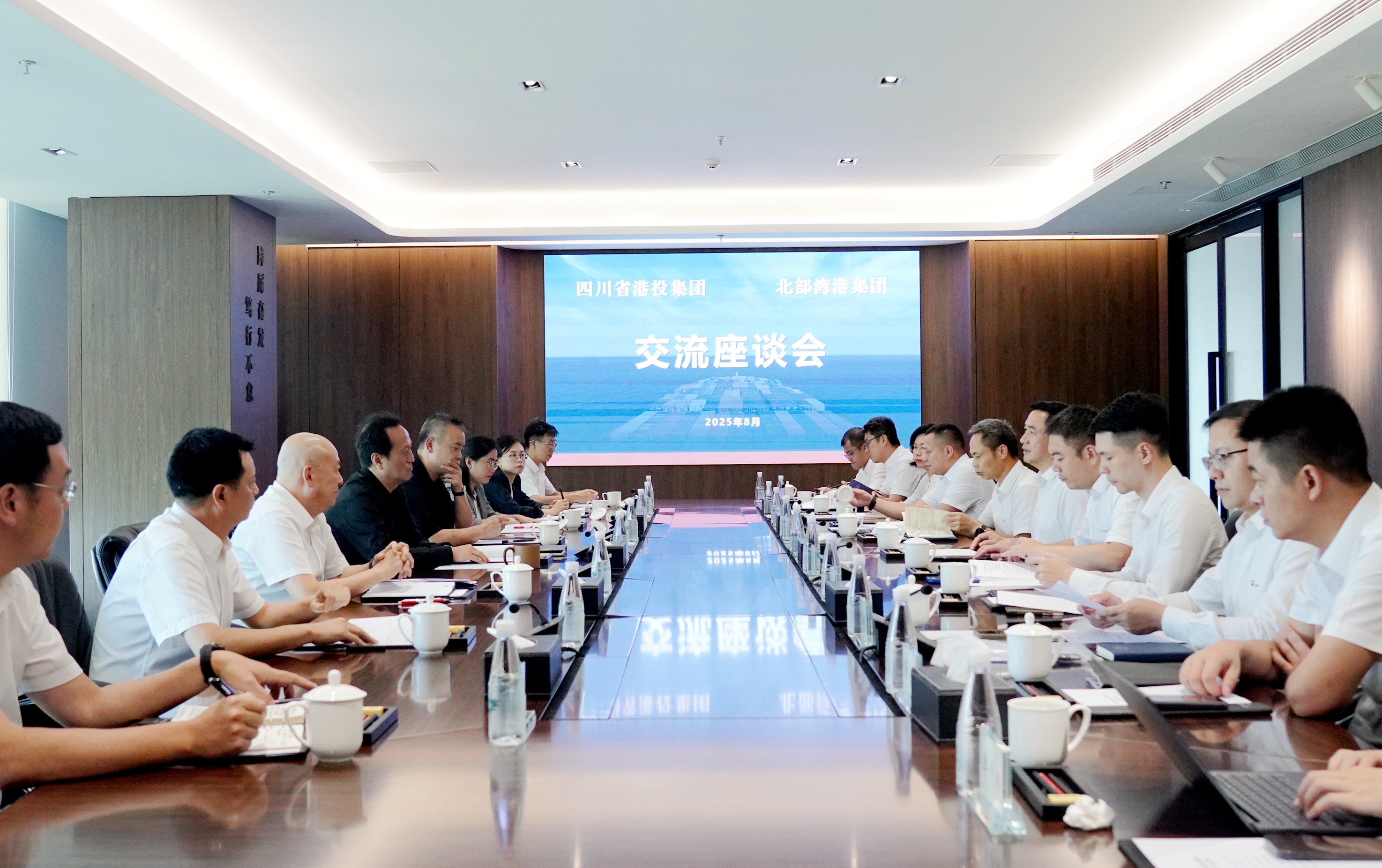 近日,北部湾港集团党委书记、董事长刘胜友一行赴省港投集团交流座谈,集团公司党委书记、董事长杨军出席座谈。