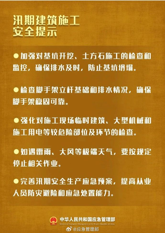 近期,多地发生暴雨洪水灾害。汛期天气多变,雷雨、大风、冰雹等强对流天气频发。重点行业领域如何做好汛期安全生产风险防控?4类行业领域安全提示↓↓