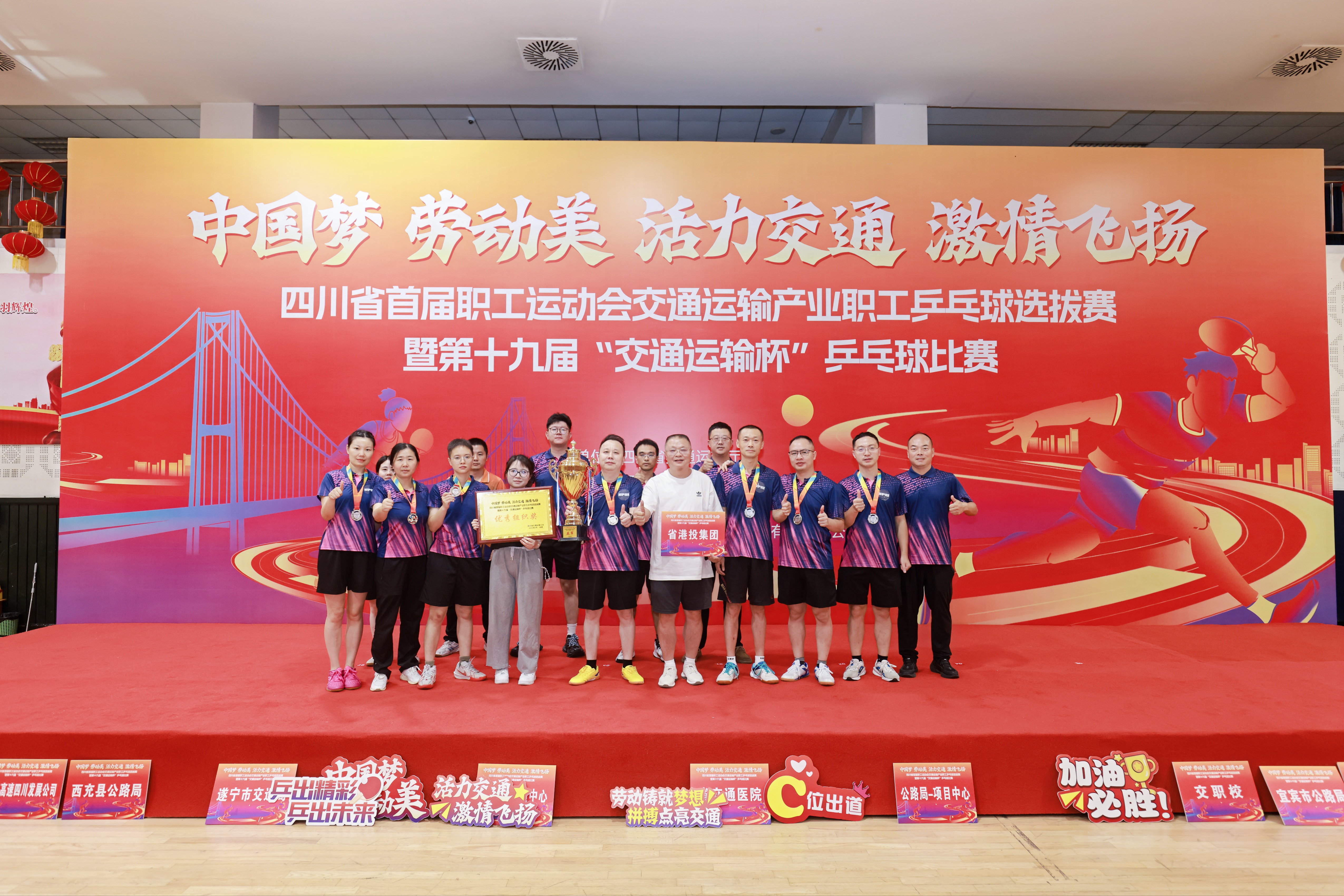 9月11日至12日,四川省首届职工运动会交通运输产业职工乒乓球选拔赛暨第十九届“交通运输杯”乒乓球比赛在成都举行。省港投集团代表队在比赛中,团结一心、奋勇争先,荣获团体第二名,男子单打和女子单打均获第五名。
