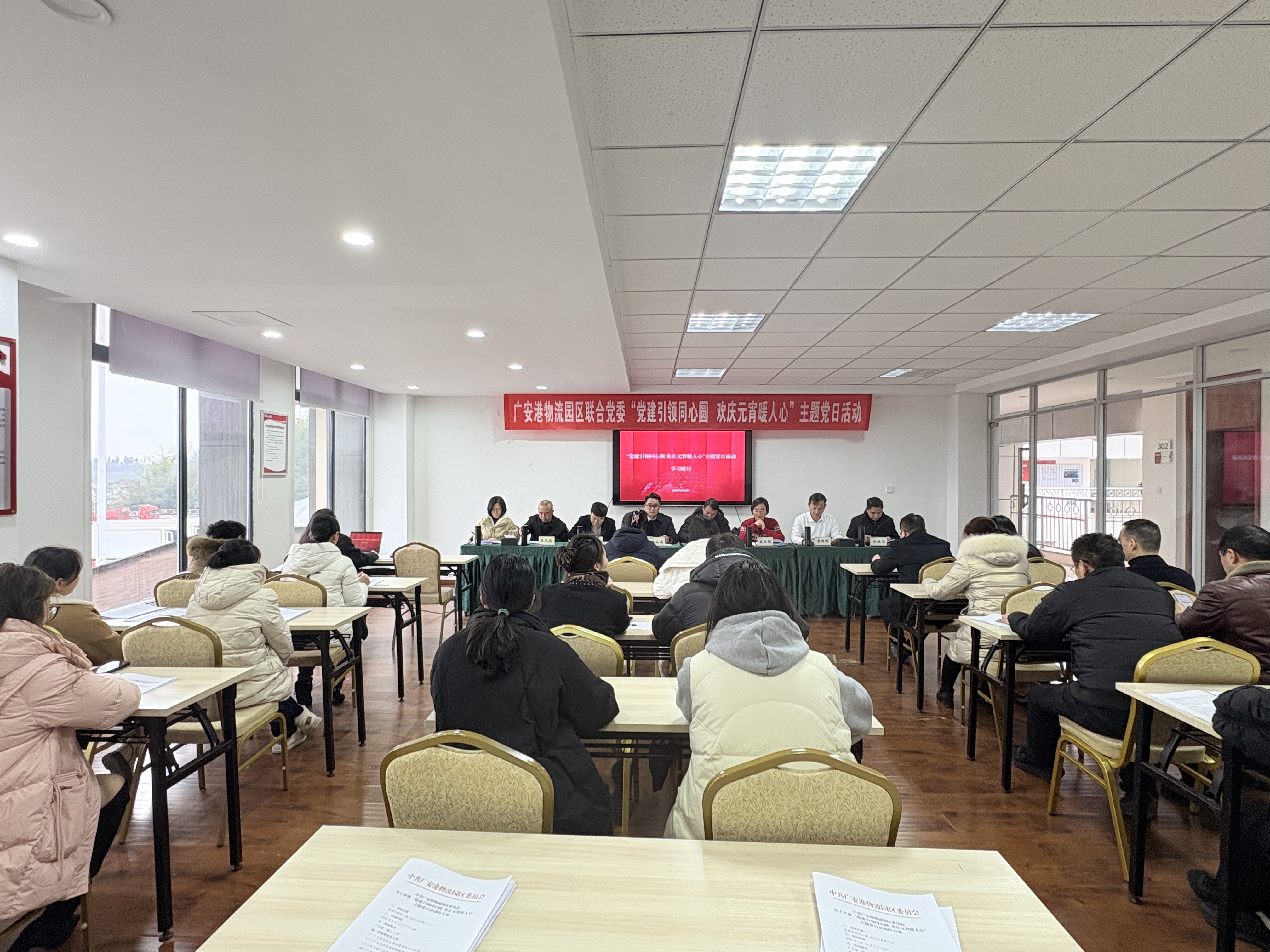 2月12日,广安港组织50余名港口入驻企业的党员职工代表,开展“党建引领同心圆欢庆元宵暖人心”主题党日活动。广安市委社会工作部、广安经开区党群工作部、四川港口公司、广安港等单位相关负责人出席活动。