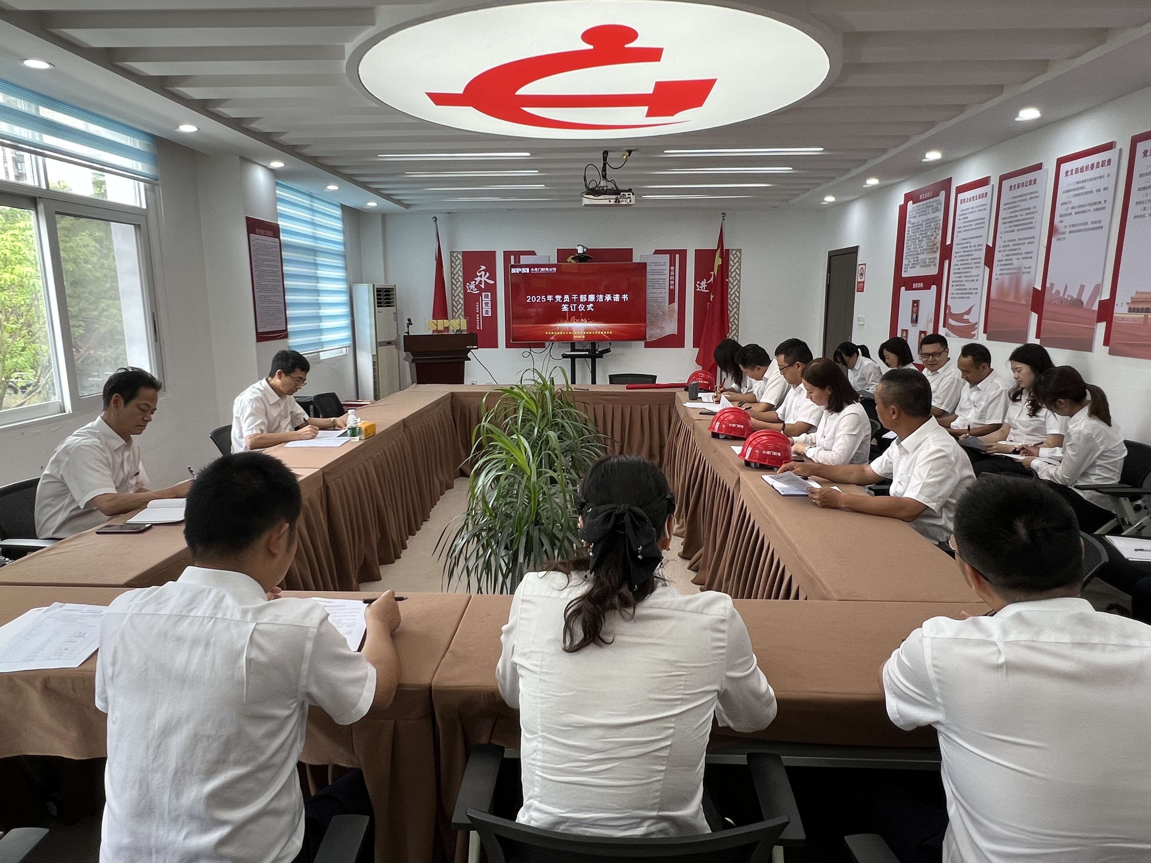 6月30日下午,在庄严的入党誓词声中,活动正式拉开帷幕。全体党员干部集体签订廉洁承诺书,作出“三坚决三绝不”郑重承诺:坚决抵制违规吃喝,绝不触碰纪律红线;坚决规范招标采购,绝不搞暗箱操作;坚决落实过紧日子要求,绝不铺张浪费。
