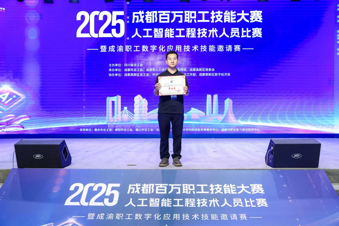 近日,由四川省总工会主办的2025年成渝地区职工数字化应用技术技能邀请赛在成都高新区菁蓉汇圆满落幕。港投数智公司职工廖添凭借扎实的技术功底和丰富的实践经验,从来自成都、重庆、德阳、眉山、资阳五地的百余名优秀选手中脱颖而出,斩获人工智能工程技术人员赛项第7名。