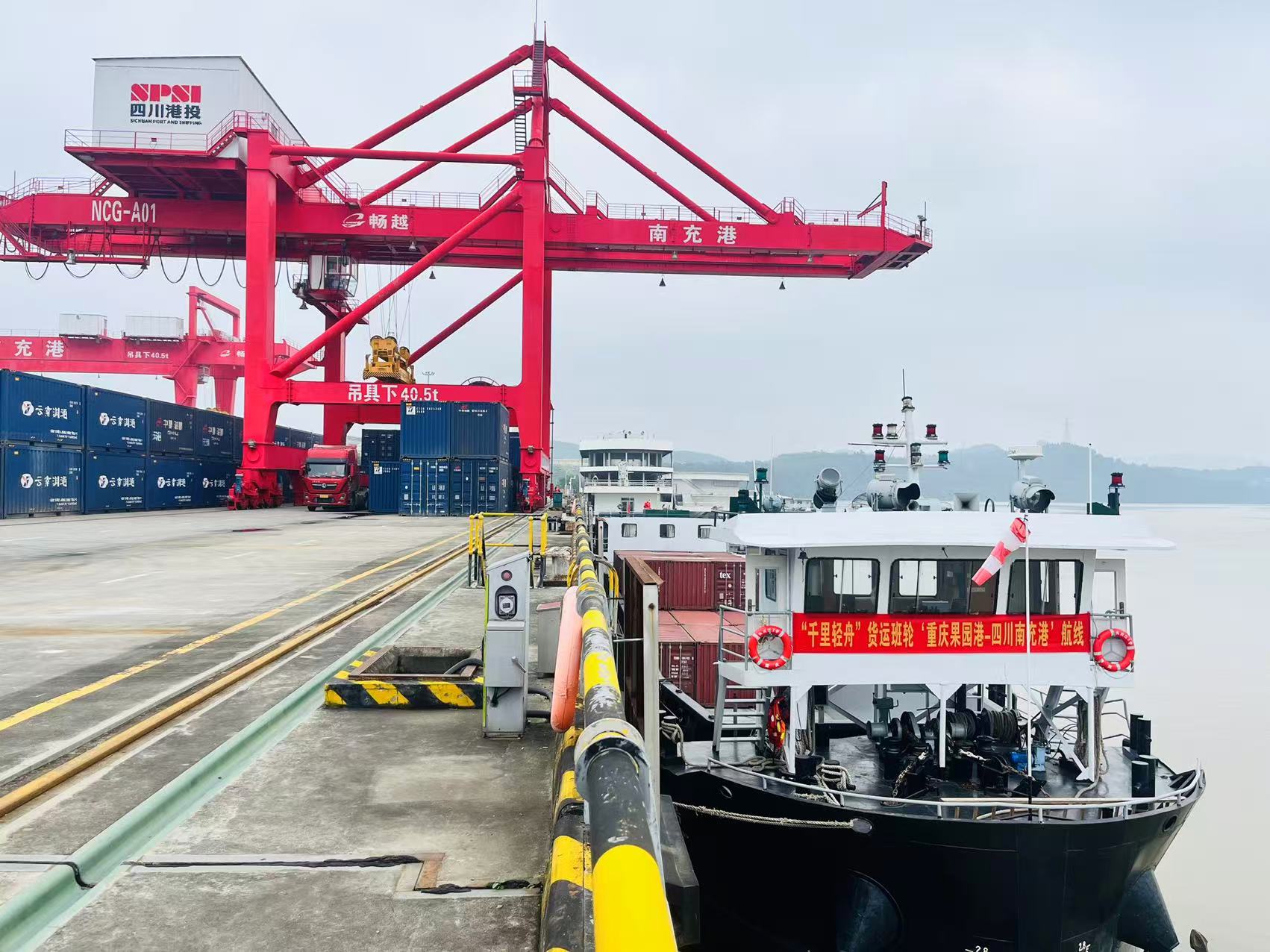 10月27日,“兴川江2号”货运班轮满装18个20英尺集装箱抵达南充港,本航次上行装载化工原料,返程下行将装载化工产成品运往长江中下游。该航次顺利抵港,标志着“重庆果园港—四川南充港”“千里轻舟”嘉陵江航线正式开通。该航线是川渝深化“干支联运、港航联动”,共建长江上游航运中心,向嘉陵江支流不断延伸服务的重要实践。