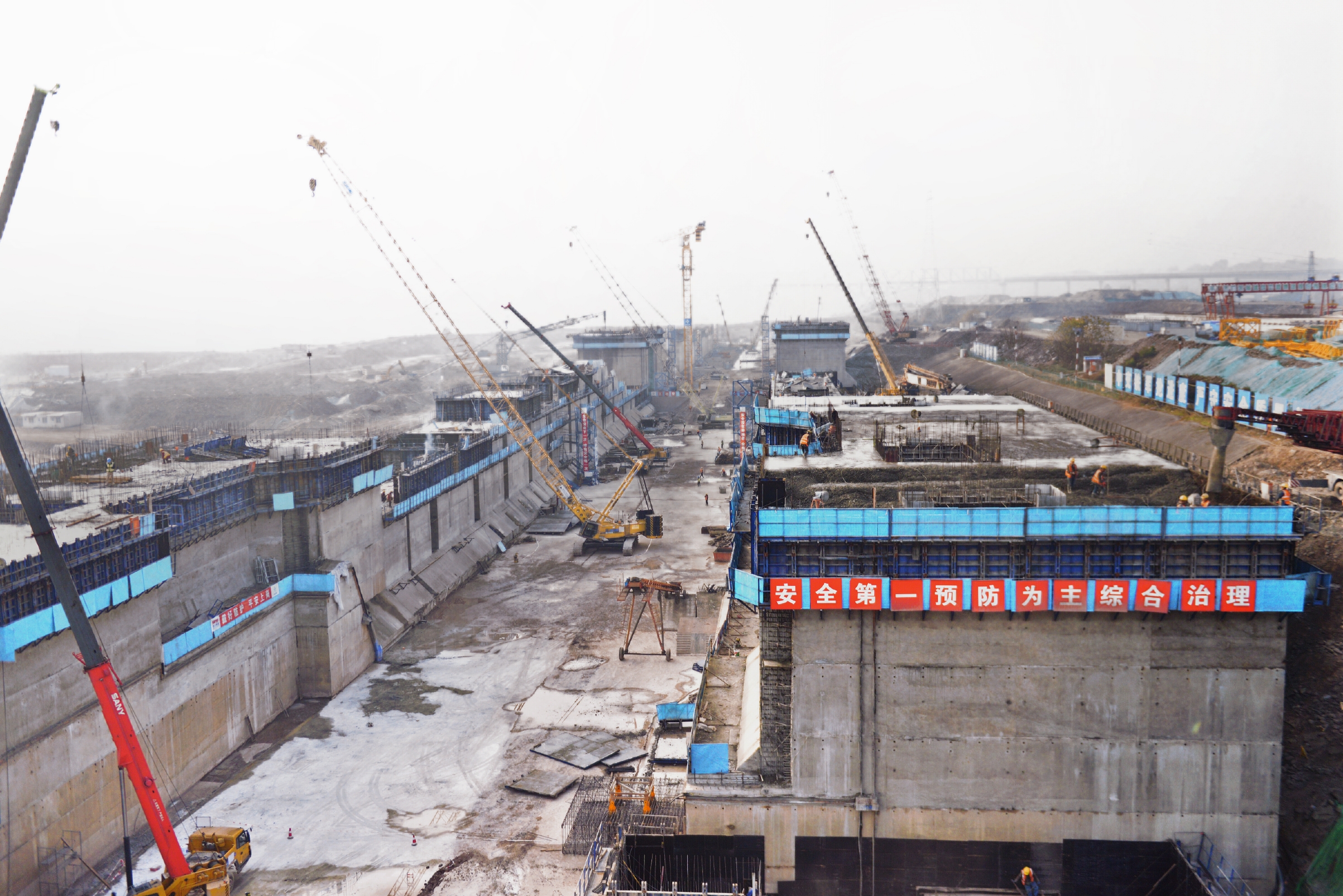 作为岷江港航电综合开发的上游起点工程,老木孔航电枢纽建设现场一片火热,70余台开挖和起重设备轰鸣不息,150余台运输车辆往来穿梭。目前,工程总体形象进度已达40%,枢纽区船闸、厂房、泄洪冲沙闸、左右岸防洪堤等作业面已全面铺开并进入高峰施工阶段,正在为达成防洪度汛形象面貌和年度工程建设投资目标全力冲刺。