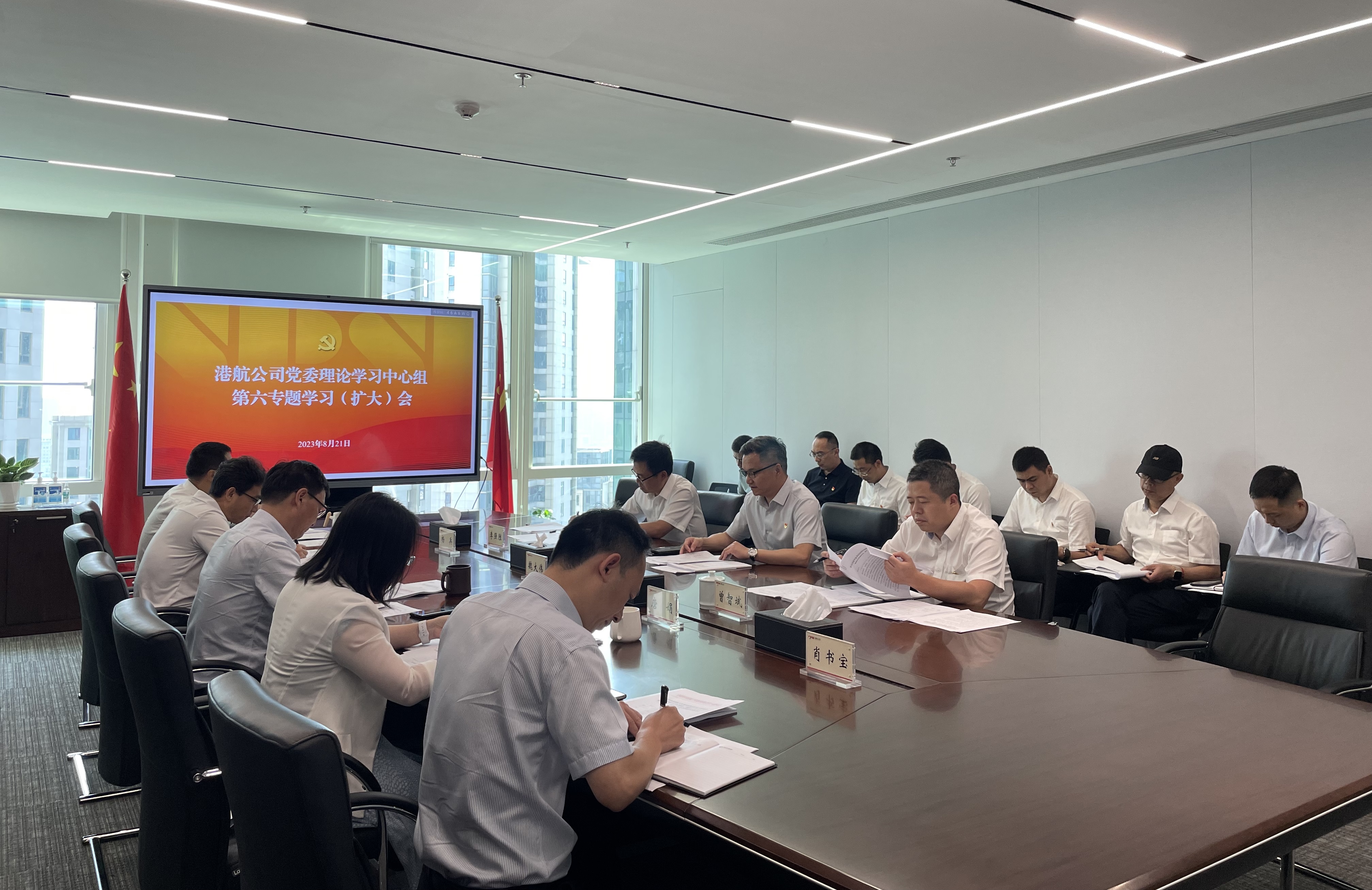 8月21日,港航公司党委召开中心组2023年第六专题学习(扩大)会暨主题教育民主生活会会前专题学习会,公司党委书记、董事长罗宗全主持会议并讲话,公司领导班子成员、各部门负责人参加会议。