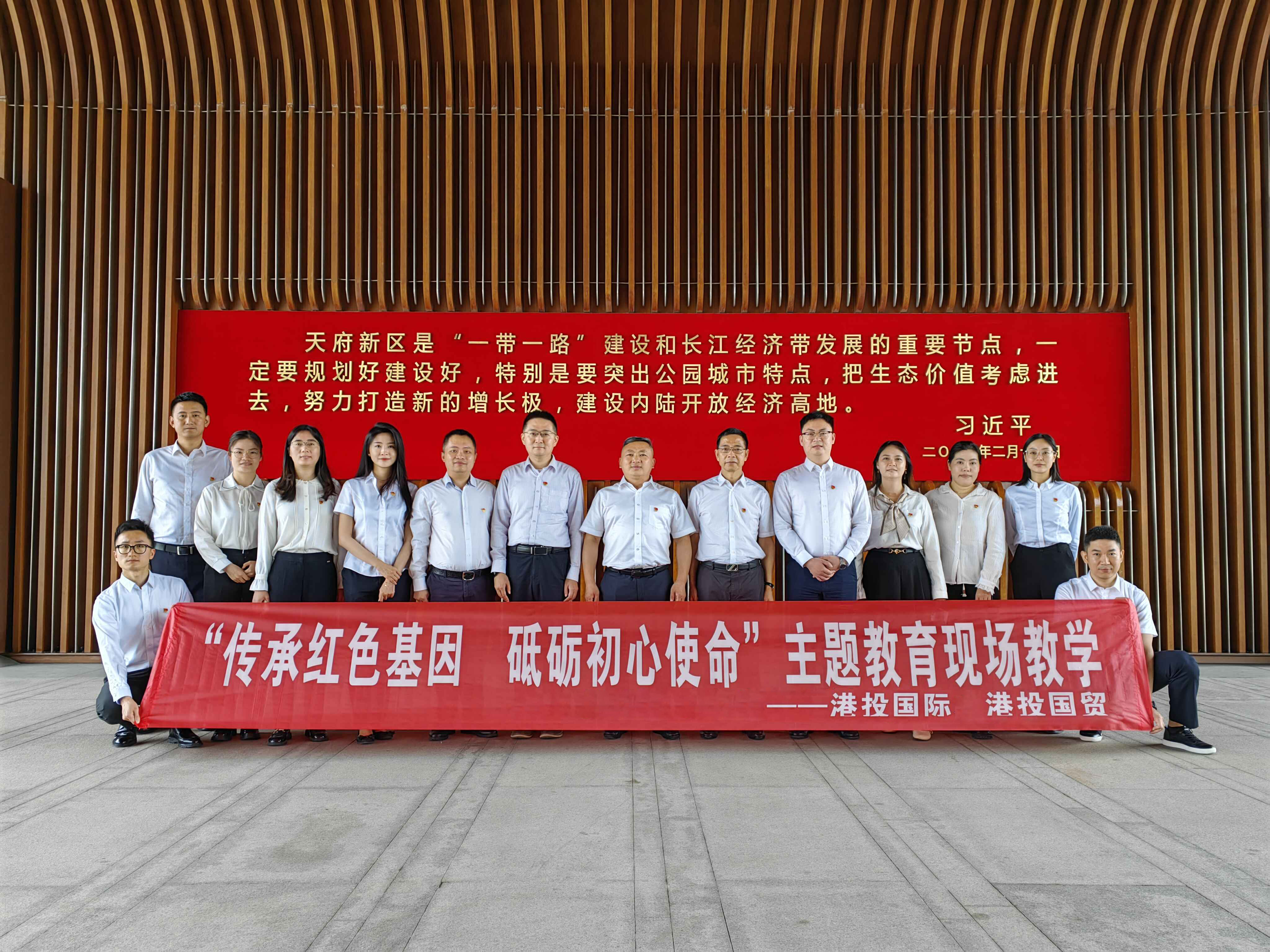 按照主题教育工作安排,港投国际公司于5月23日上午赴天府新区规划厅开展“传承红色基因,砥砺初心使命”主题教育现场教学,并在公司“一带一路”进出口商品集散中心项目预选址现场以及天府法治文化公园开展主题教育及廉洁文化教育,港投国际公司在家领导班子、公司本部及所属企业在蓉全体党员参加。